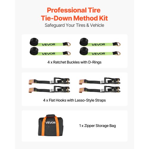 VEVOR Wheel Chock Tie-Down Kit, Tire-Style Trailer Tie Down Strap, Car Tie Down Kit with Flat Hook, Break Strength 10009 lbs & Working Load 3333 lbs Motorcycle Tie-Down System for ATVs, SUVs, Trailers