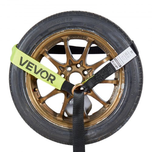 VEVOR Wheel Chock Tie-Down Kit, Tire-Style Tow Dolly Strap, Car Tie Down Kit with Heavy-Duty Hook, Break Strength 10009 lbs & Working Load 3333 lbs Motorcycle Tie-Down System for ATV, SUV, Trailer