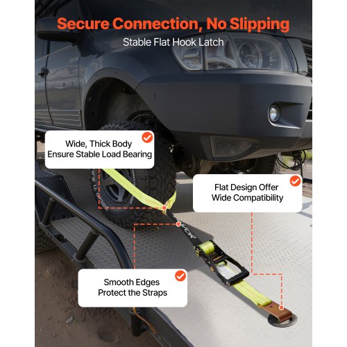 VEVOR Car Tie Down Straps Kit, Lasso Style 2" x 120" Tire Straps, 5512 LBS Working Load, 11023 LBS Breaking Strength, with Flat Hooks for Passenger Car, ATV, Motorcycle, Van, SUV, UTV, Trailer, 4-Pack