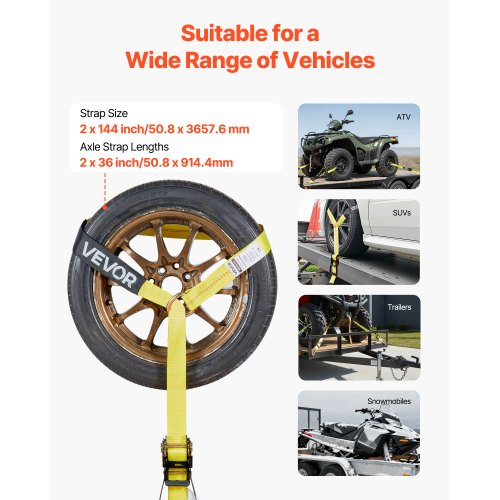 VEVOR Wheel Chock Tie-Down Kit, Axle Type Trailer Tie Down Strap, Car Tie Down Kit with Break Strength 10009 lbs, Working Load 3333 lbs, Trailer Ratchet Strap for ATV, UTV, & Heavy-Duty Pickup Trucks