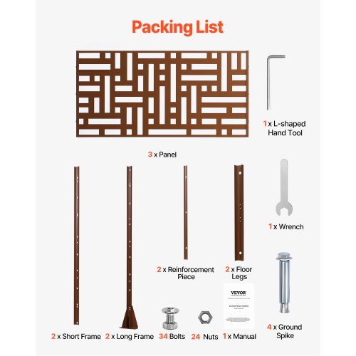 VEVOR Outdoor Privacy Screens, 50" W x 50" H Air Conditioner Fence, Pool Equipment Enclosure, Horizontal Vinyl Privacy Fence, Perfect to Enclose Trash Can and A/C Units (4-Panel)