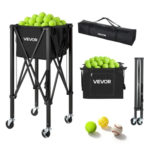 VEVOR Tennis Ball Hopper, Holds 150 Tennis Balls, Foldable Pickleball Basket Cart with Wheels for Easy Pick Up, Lightweight Aluminum Alloy, Portable Pickleball Caddy with Storage Bag, for Training