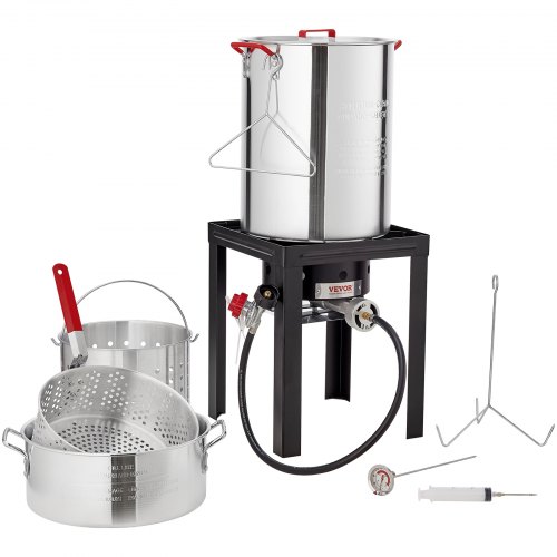 VEVOR Turkey Deep Fryer, 30-qt Turkey & 10-qt Fish Steamer Cooker Set, Outdoor Aluminum Seafood Frying Pot, 54,000 BTU Burner Propane Gas Boiler, Includes Baskets, Perforated Poultry Rack, Thermometer