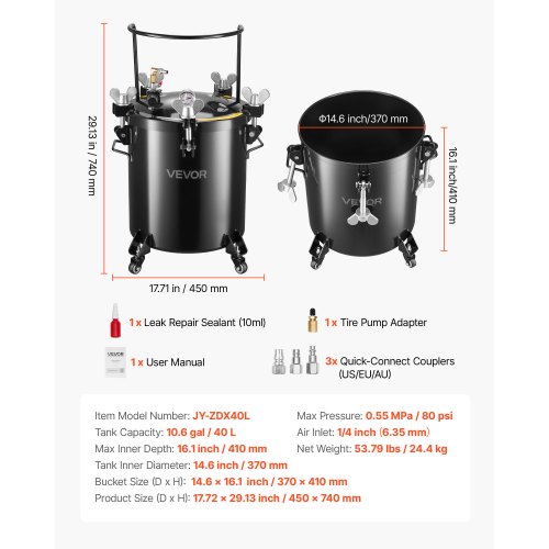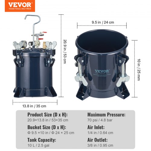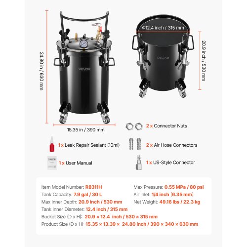VEVOR Spray Paint Pressure Pot Tank, 30L/8gal Air Paint Pressure Pot with Manual Mixing Agitator, Leak Repair Sealant for Industry Home Decor Architecture Construction Automotive Painting, 70PSI Max