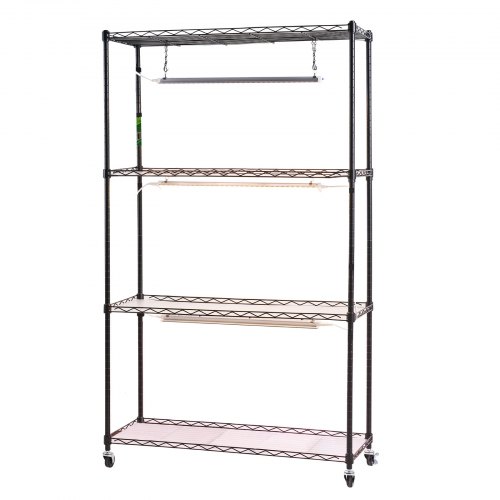 VEVOR Plant Shelf with Grow Light, 4-Tier Indoor Plant Stand, 59in Tall Plants Display Rack with Wheels, 90W 3-Color Full Spectrum Grow Lights, Heavy Duty Metal Flower Pot Holder for Seed Starting