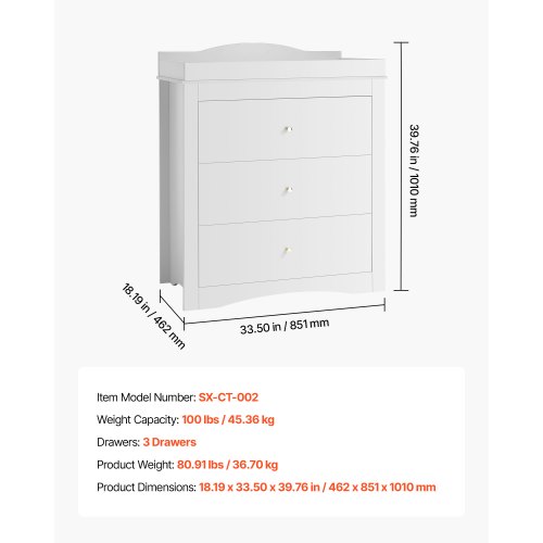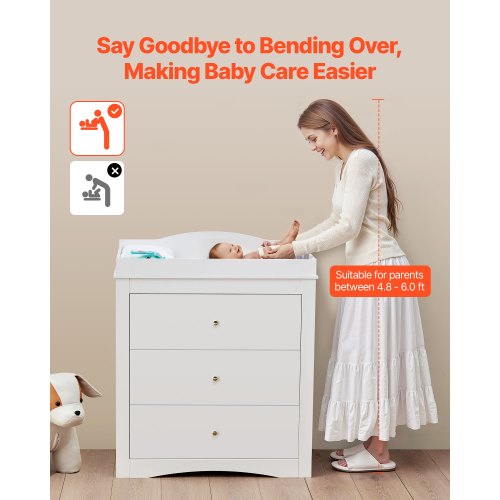 VEVOR Changing Table Dresser, Baby Diaper Change Station with 3 Drawers, Multi-Functional Modern Changing Table Dresser with Storage Organizer Nursery for Children's Room, White