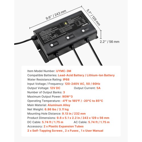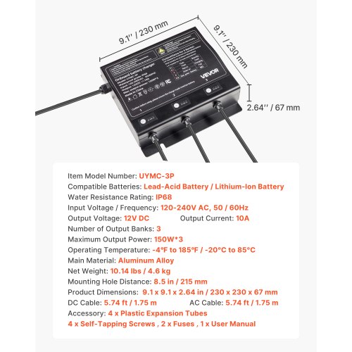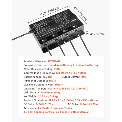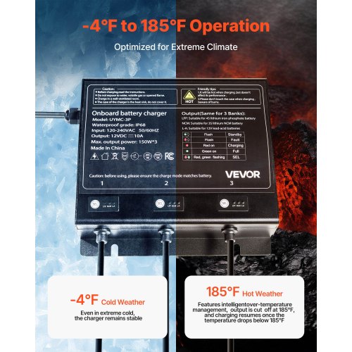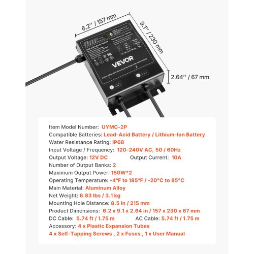 VEVOR 48 Volt Golf Cart Battery Charger, 15 AMP, Smart Battery Charger with G29 Plug, Compatible with Lead-Acid AGM/GEL/EFB MF Flooded NMC LiFePO4 Batteries for Yamaha, IP67 Waterproof ETL Certified