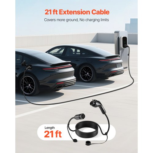 VEVOR EV Charger Extension Cable, 40Amp 21 ft J1772 Extension Cord Compatible with 120V-240V SAE J1772 Electric Vehicle Chargers, Level 1/Level 2 IP66 Heavy Duty Car Charging Cable with Carrying Bag