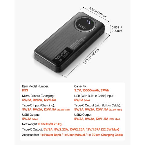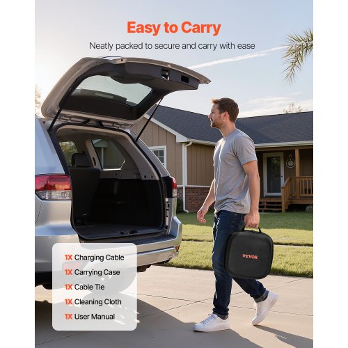 VEVOR Level 2 EV Charger, 40 Amp Adjustable Current, 240V Electric Vehicle Portable Charger with 25 ft Charging Cable, LCD Display, NEMA 14-50P Plug, Plug-in Home Car Charging Station for SAE J1772 EV