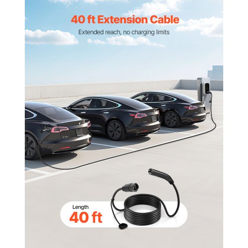 VEVOR EV Charger Extension Cable for Tesla, 48Amp 40 ft Max 240V 11.52 kW with NACS Plug, EV Extension Cord for Level 1/2 Tesla Mobile/Wall Connector/Destination Charger, Model Y/X/3/S, Carrying Bag