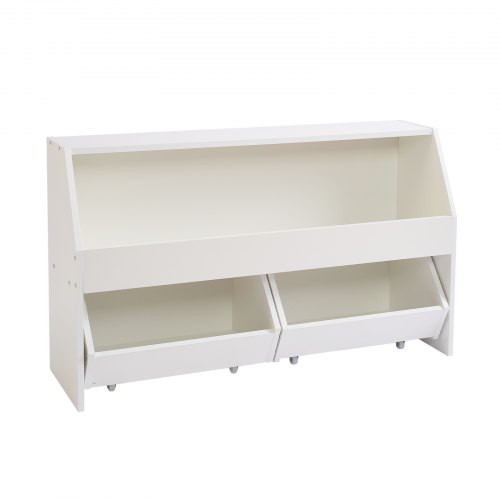 VEVOR Toy Storage Organizer, Wooden Kids Bookshelf with Storage, Toy Storage Cabinet with 2 Mobile Drawers, Kids Storage Organizer for Bedroom, Nursery, Living Room, Entryway, Preschool, White