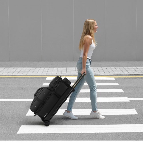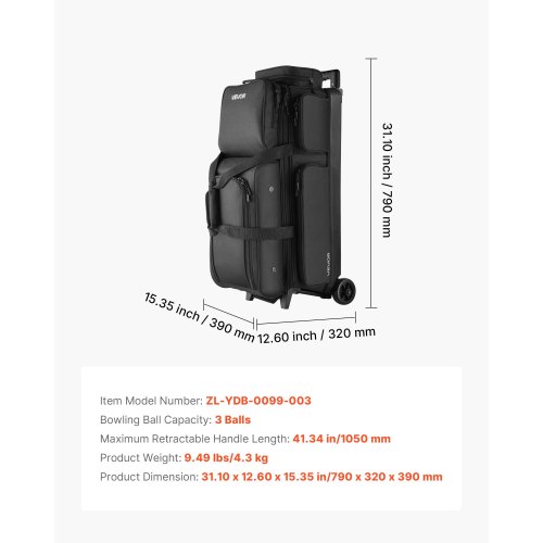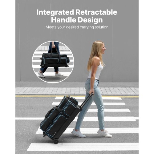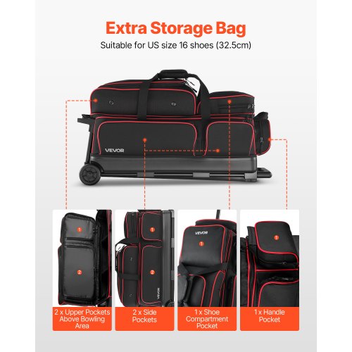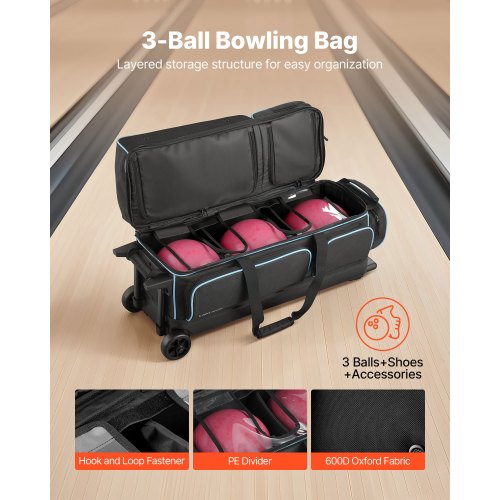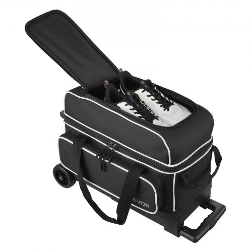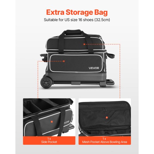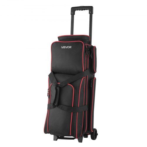 VEVOR Bowling Ball Bag, 2 Ball Four Roller Bowling Bag with Wheels, Featuring a Separate Compartment for Shoes (Up To US Size 16) & Oversized Accessory Pocket, Retractable Handle Extends to 37.4 in