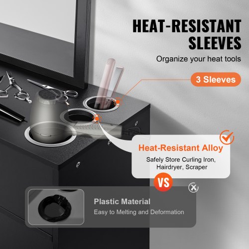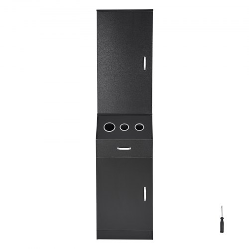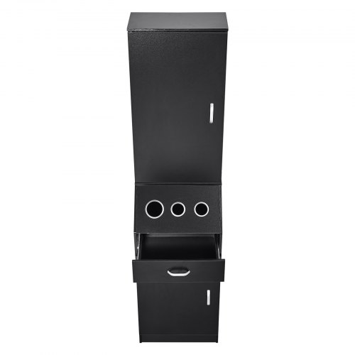 VEVOR Salon Organizer, Station Unit for Hair Professionals, Equipped with 3 Holders for Hair Dryers, Storage Spaces, and a Single Drawer, in Black