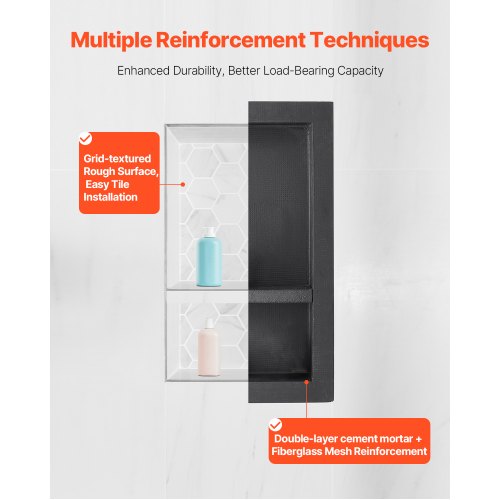 VEVOR Shower Niche, 16 x 32 inch + 16 x 32 inch Recessed Wall Niche with Movable Shelf, 4 inch Thick Modern Soap&Shampoo Storage Organizer,Square Corners,Sealed Waterproof,Black for Bathroom Shower