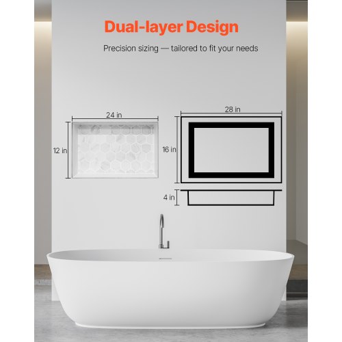 VEVOR Shower Niche, 16 x 24 inch + 16 x 24 inch Recessed Wall Niche with Movable Shelf, 4 inch Thick Modern Soap&Shampoo Storage Organizer,Square Corners,Sealed Waterproof,Black for Bathroom Shower