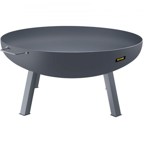 VEVOR Fire Pit Bowl, 34-Inch Diameter Round Carbon Steel Fire Bowl, Wood Burning for Outdoor Patios, Backyards & Camping Uses, with A Drain Hole, Portable Handles and A Firewood Stick, Black