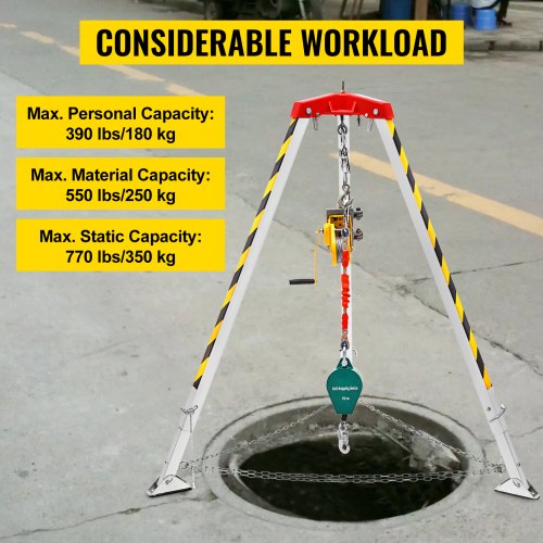 VEVOR Confined Space Tripod with 2600lbs Winch Confined Space Kit 8\' Legs and 98\' Cable Confined Space Rescue Tripod with 32.8\' Fall Protection for Confined Space Rescue