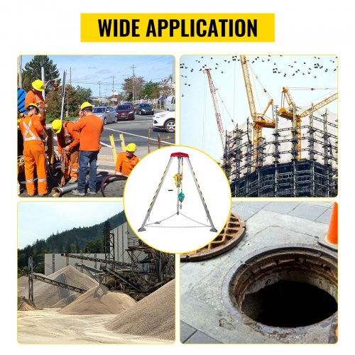VEVOR Confined Space Rescue Tripod 1200lbs Winch with 8\' Legs Confined Space Kit 98\' Cable Rescue Tripod 32.8 Feet Fall Protection for Confined Space Rescue