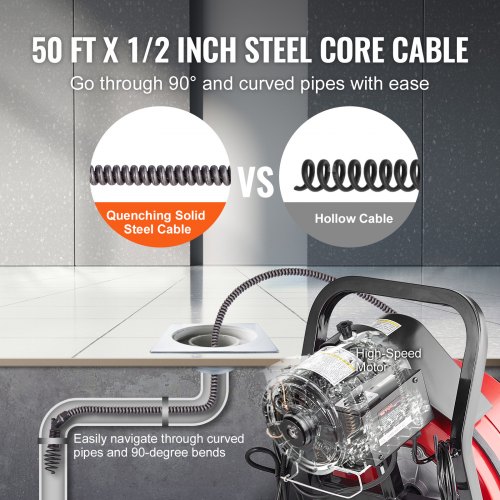 VEVOR Drain Cleaner Machine 50FT x 1/2 Inch Manual Feed Snake Auger with Wheels