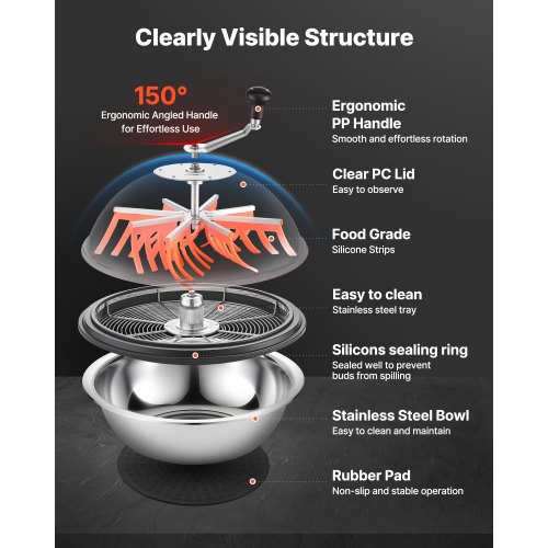 VEVOR Manual Bud Leaf Trimmer, 16 in Reaper Bowl Bud Trimmer with Stainless Steel Blades, Visual Cutting, Wet & Dry Hydroponic Cutting Machine with Tray, Twisted Spin Cut for Plant Buds Flowers