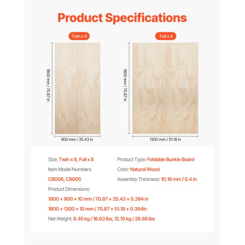VEVOR Full Size Bunkie Board, 0.4 in Foldable Bed Board Slats with Connection, Wooden Mattress Support for Full Size Bed, Support under Mattress Boards, Ready to Use, 8 Piece, Burlywood