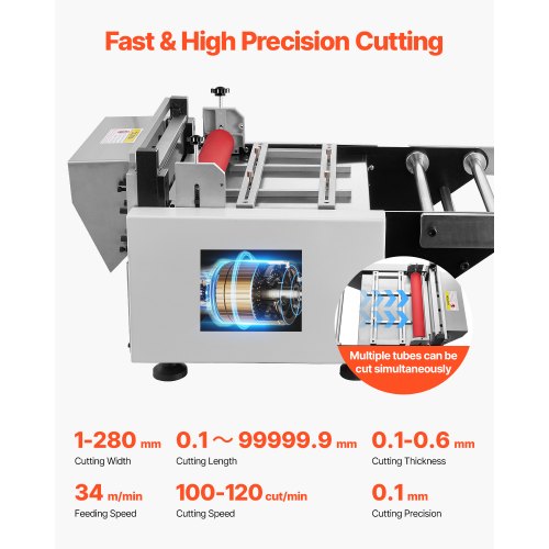 VEVOR Auto Heat-Shrink Tube Cutter, Automatic Pipe Cutting Machine with 1mm to 280mm Cutting Width, 0.1-0.6mm Cutting Thickness, Ideal for Non-Woven Fabric, PVC Film, Insulating Paper, Aluminum Foil