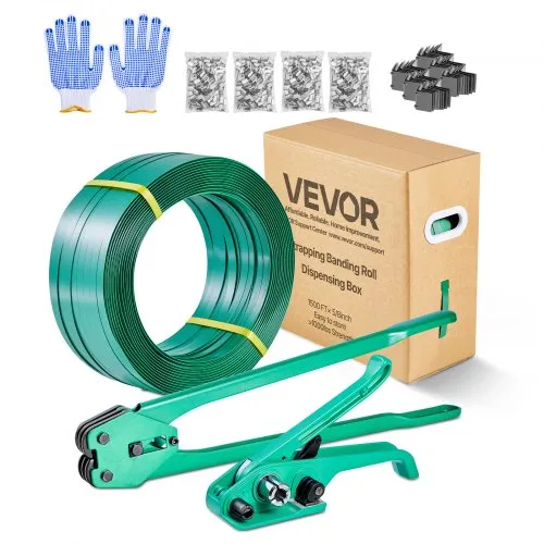 VEVOR Banding Strapping Kit with Strapping Tensioner Tool, 100 ft Length 304 Stainless Steel Banding, 100 Metal Seals, Pallet Packaging Strapping Banding Kit, Banding Packaging Strapping for Packing