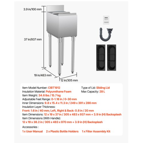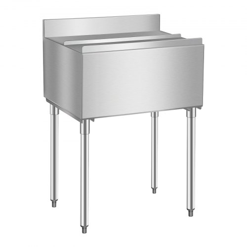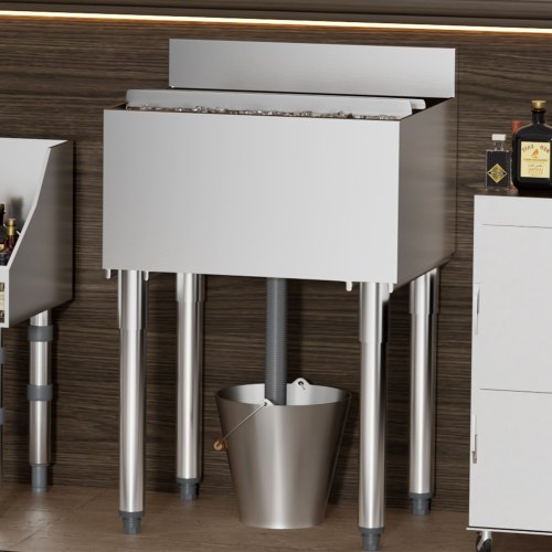 VEVOR Commercial Ice Bin, 28 L Underbar Ice Bin, 12 x 19 x 37 in Stainless Steel Ice Chest with Sliding Lid, Bottle Holders, Adjustable Bullet Feet, Cooler Cart Cocktail Unit for Bar Restaurant Pub