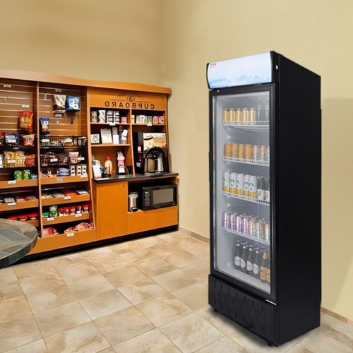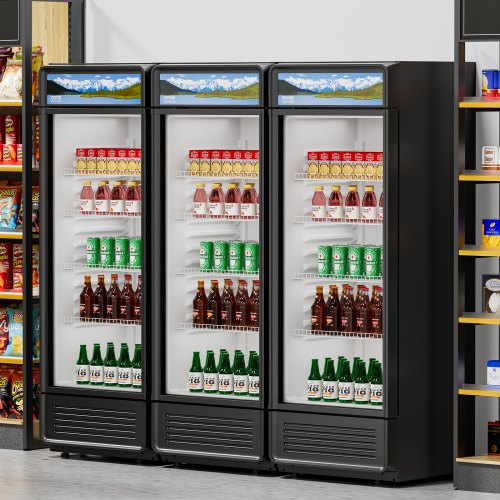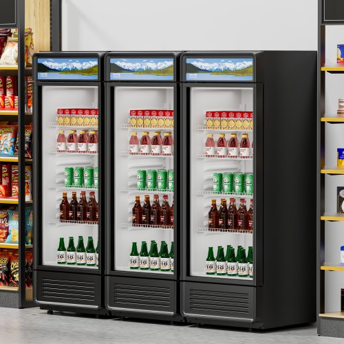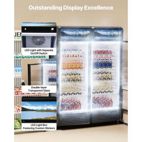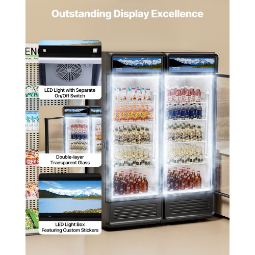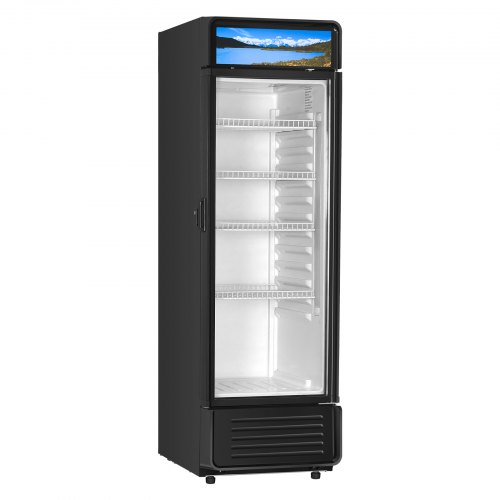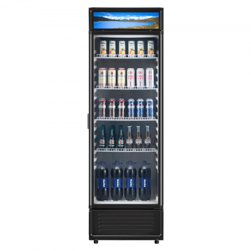 VEVOR Commercial Merchandiser Refrigerator, 9.7 Cu.Ft / 275L Beverage Refrigerator Cooler Merchandiser, Glass Door Display Refrigerator Upright Fridge with 4 Adjustable Shelves, Customizable Lightbox