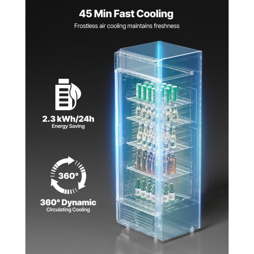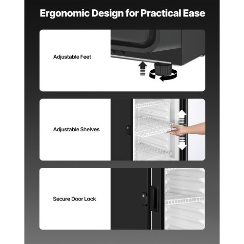 VEVOR Commercial Merchandiser Refrigerator, 8.1 CU.FT Glass Door Display Refrigerator Upright Fridge, Beverage Refrigerator Cooler Merchandiser with 4 Adjustable Shelves and Soft LED Light, Black