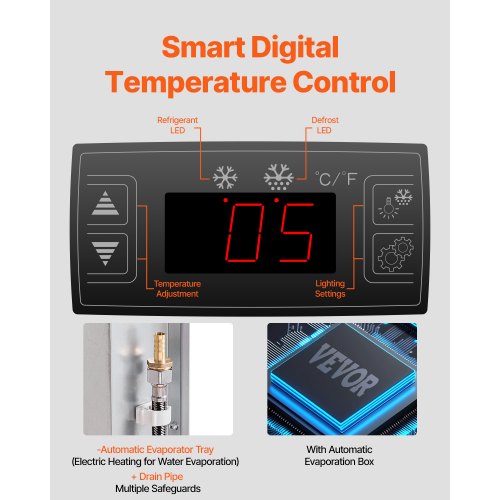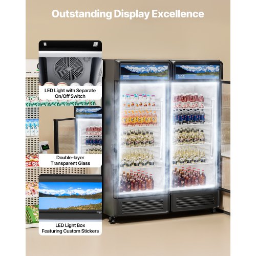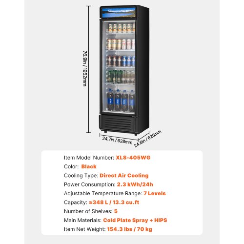VEVOR Commercial Merchandiser Refrigerator, 6.8 Cu.Ft / 195L Beverage Refrigerator Cooler Merchandiser, Glass Door Display Refrigerator Upright Fridge with 3 Adjustable Shelves, Customizable Lightbox
