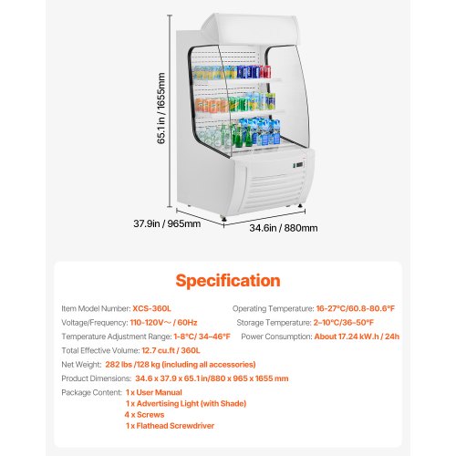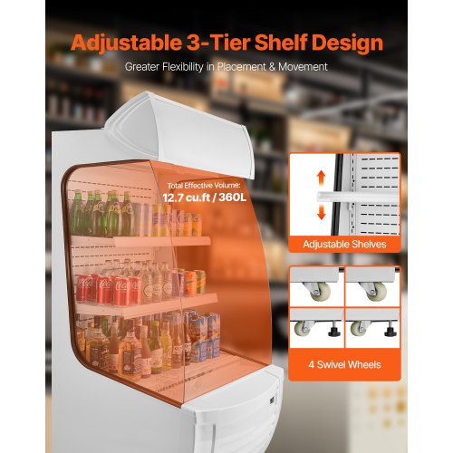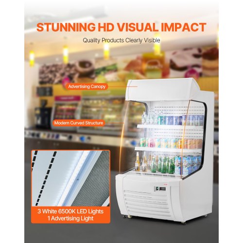 VEVOR Open Air Merchandiser, 4-Tier Shelving Commercial Refrigerator, Grab and Go Display Cooler Refrigerator with Air Curtain, LED Advertising Light, Fits for Restaurants, Stores, Office, 18.4cu.ft.