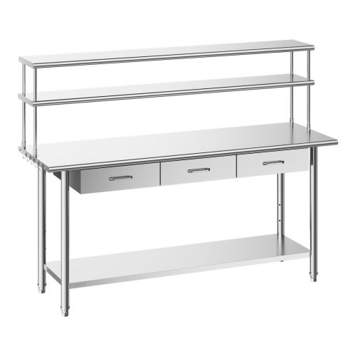 VEVOR Stainless Steel Work Table, 24x72 Inch Food Prep Table with Overshelves and 3 Drawers, Commercial Kitchen Workstation with Adjustable Undershelf, Metal Utility Worktable, for Restaurant Garage