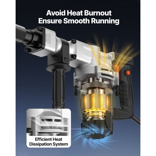 VEVOR Demolition Jack Hammer, 3500W Jack Hammer Concrete Breaker, 1900 BPM Heavy Duty Electric Jack Hammer, 2pcs Chisel with Gloves & 360°C Swiveling Front Handle for Trenching and Breaking Holes