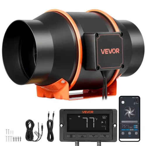 VEVOR Inline Duct Fan, 6-Inch 402 CFM with Temperature Humidity Controller, Quiet EC-motor Ventilation Exhaust Fan for Cooling Booster, Grow Tents, Hydroponics