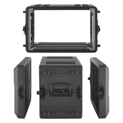 VEVOR 6U Rack Case, 15 in Depth, Rackmount Flight Case Shallow Rack with Microphone Compartments, Polyethylene Construction, Recessed Latches, Easy Installation, for Amplifier, 13.8 in Internal Depth