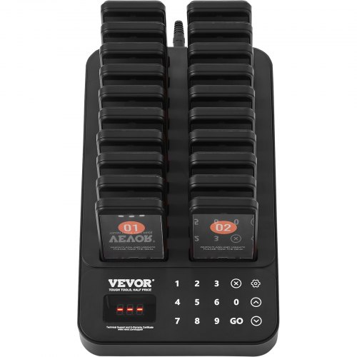 VEVOR Restaurant Pager System, Wireless 400m Long Range Lineup Waiting Queue Signal, Guest Customer Calling Beepers with Vibration & Flashing, 24 Buzzers for Food Truck, Church, Nursery, Hospital