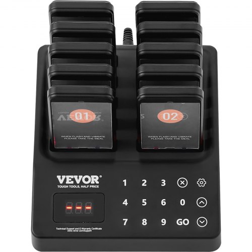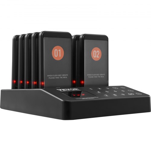 VEVOR Restaurant Pager System, Wireless 500m Long Range Lineup Waiting Queue Signal, Guest Customer Calling Beepers with Vibration & Flashing, 20 Buzzers for Food Truck, Church, Nursery, Hospital
