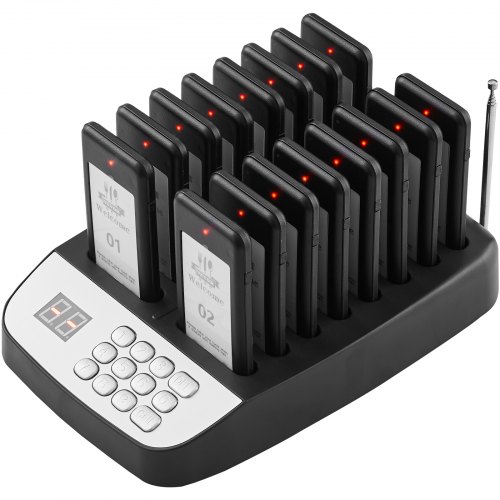 VEVOR Restaurant Pager System, Wireless 500m Long Range Lineup Waiting Queue Signal, Guest Customer Calling Beepers with Vibration & Flashing, 16 Buzzers for Food Truck, Church, Nursery, Hospital