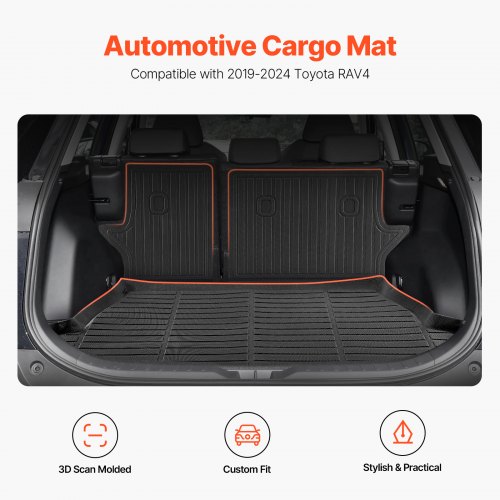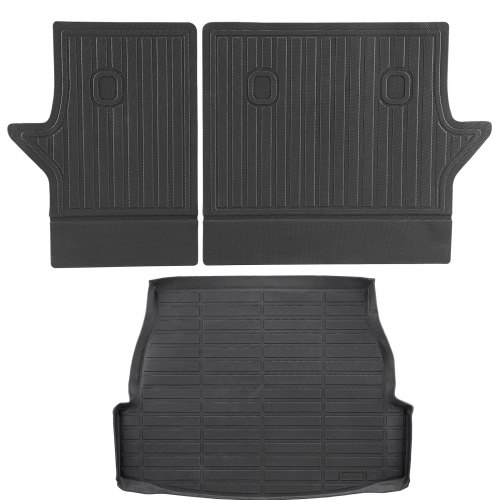 VEVOR Cargo Mats Compatible with Toyota Kluger & Highlander 2020-2024, Custom Fit TPE Cargo Liner Set for SUVs, Trunk and Rear Back Seat Protector Replacement, Trunk Mat and Backrest Mats