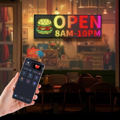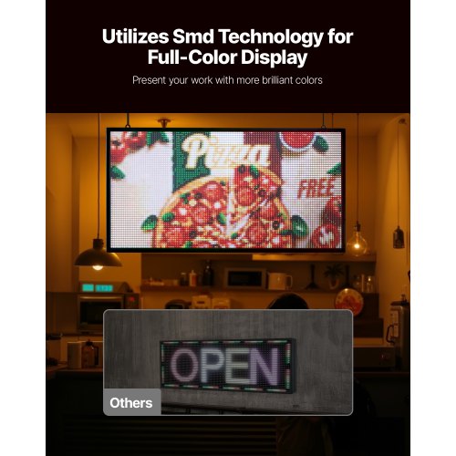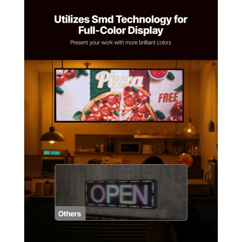 VEVOR Programmable LED Sign, P10 Full Color Flexible Digital Scrolling Panel, DIY Custom Text Pattern GIF Display Board, Bluetooth APP Control Message Shop Sign for Store Business Advertising, 40x14 in