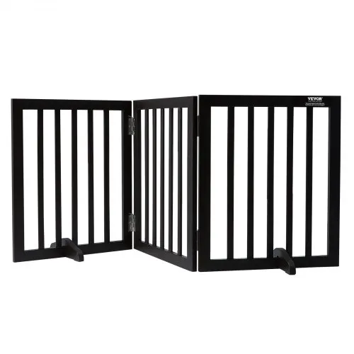 VEVOR Free Standing Dog Gate, 24" H x 60" W Freestanding Pet Gate, 3 Panels Foldable Dog Gate for Wide and Narrow Passageways, Expandable Dog Barrier with Silent Foot Support for Indoor, Brown