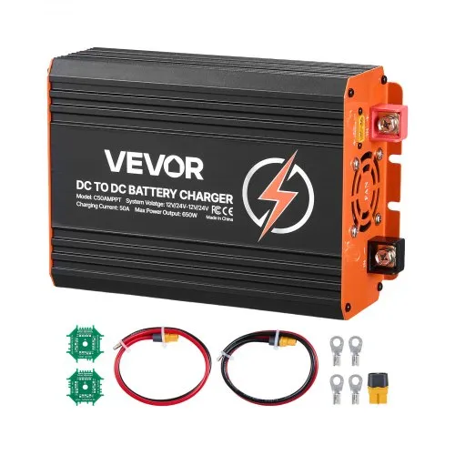 VEVOR DC to DC Battery Charger, 520W, 40A Alternator Charger, Fast DC-DC Charging for Portable Power Stations, Compatible with LiFePO4 Lead-Acid AGM GEL Batteries, 12V/24V-12V/24V, for RV Home Backup