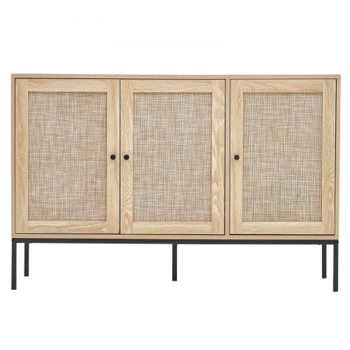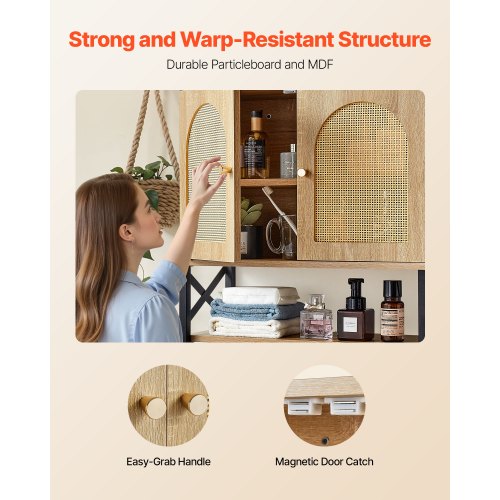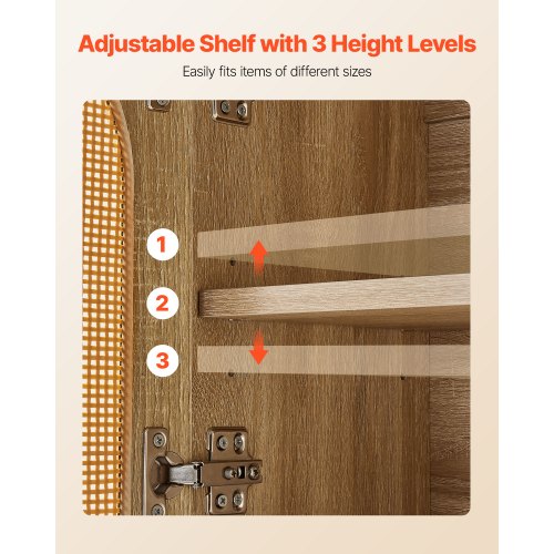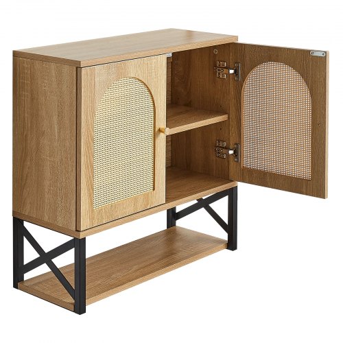 VEVOR Rattan Cabinet, Set of 2, Rattan Storage Cabinet with 4 Magnetic Doors and Adjustable Shelves, Sideboard Buffet Cabinet for Hallway, Entryway, Living Room, or Kitchen, Natural
