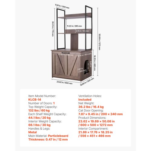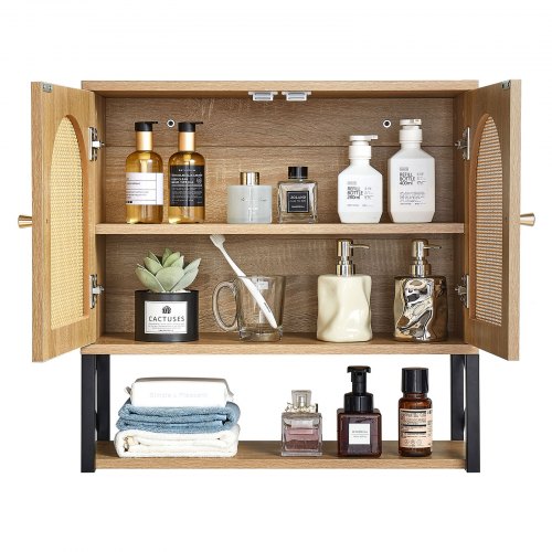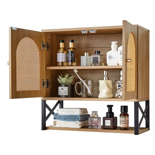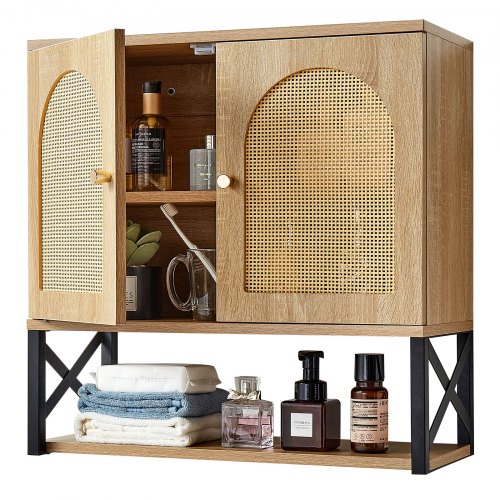 VEVOR Bathroom Wall Cabinet, 2 Doors and Adjustable Shelf, Over the Toilet Storage Medicine Cabinet Wall Mounted, Hanging Organizer with Shelves and Open Partition for Laundry Room Kitchen Restroom