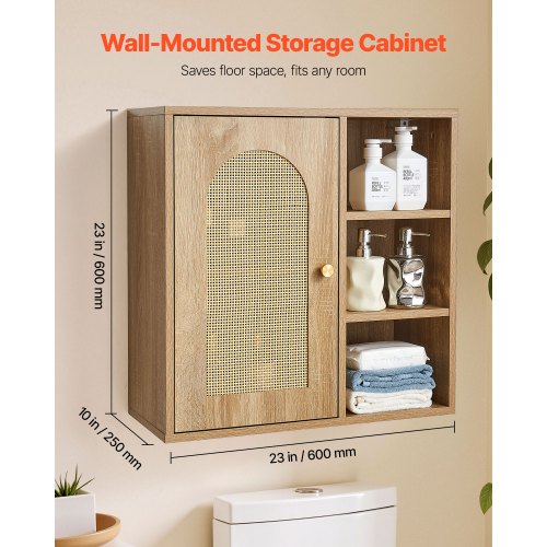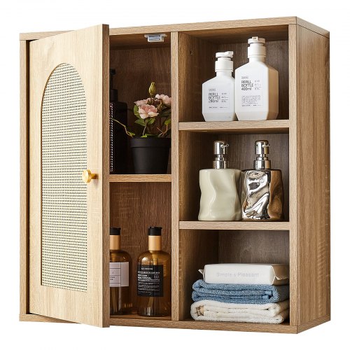 VEVOR Bathroom Wall Cabinet, Door and Adjustable Shelf with 5 Height Levels, Over the Toilet Storage Medicine Cabinet Wall Mounted, Hanging Organizer with Shelves for Laundry Room Kitchen Restroom