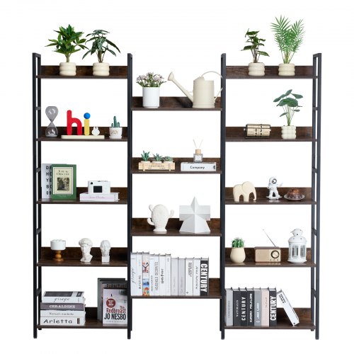 VEVOR Industrial Pipe Shelf, 6 Tier 24x9.84in, Wall-Mount Floating Rustic Wood Shelves Bracket Display Bookshelf, Storage Rack Sundries Holder for Kitchen Bedroom Bathroom Living Room, Black