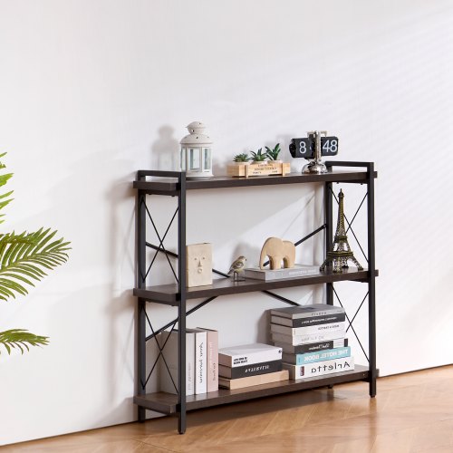 VEVOR Industrial Pipe Shelf, 3 Tier 48x9.84in, Wall-Mount Floating Rustic Wood Shelves Bracket Display Bookshelf, Storage Rack Sundries Holder for Kitchen Bedroom Bathroom Living Room, Black