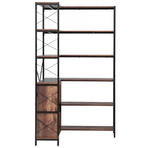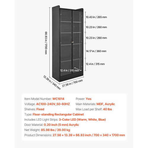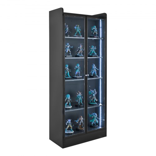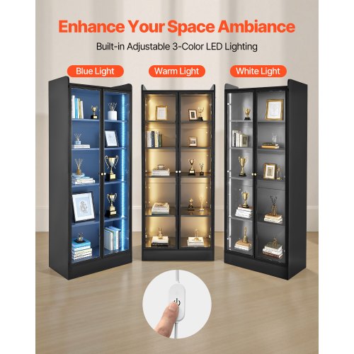 VEVOR Display Cabinet with Doors, 67 in Tall Lighted Display Case with 2 Adjustable Shelves, 5-Tier Curio Collectibles Storage Cabinet, Bookshelf Bookcase for Pantry Bedroom Living Room Office