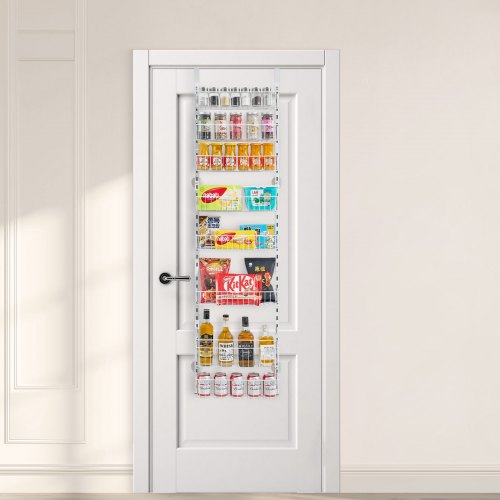 VEVOR Over the Door Pantry Organizer, 9-Tier Pantry Organization and Storage, Heavy-Duty Steel Hanging Spice Rack, Adjustable Wall Seasoning Shelves, for Home Kitchen Laundry Room Bathroom, White
